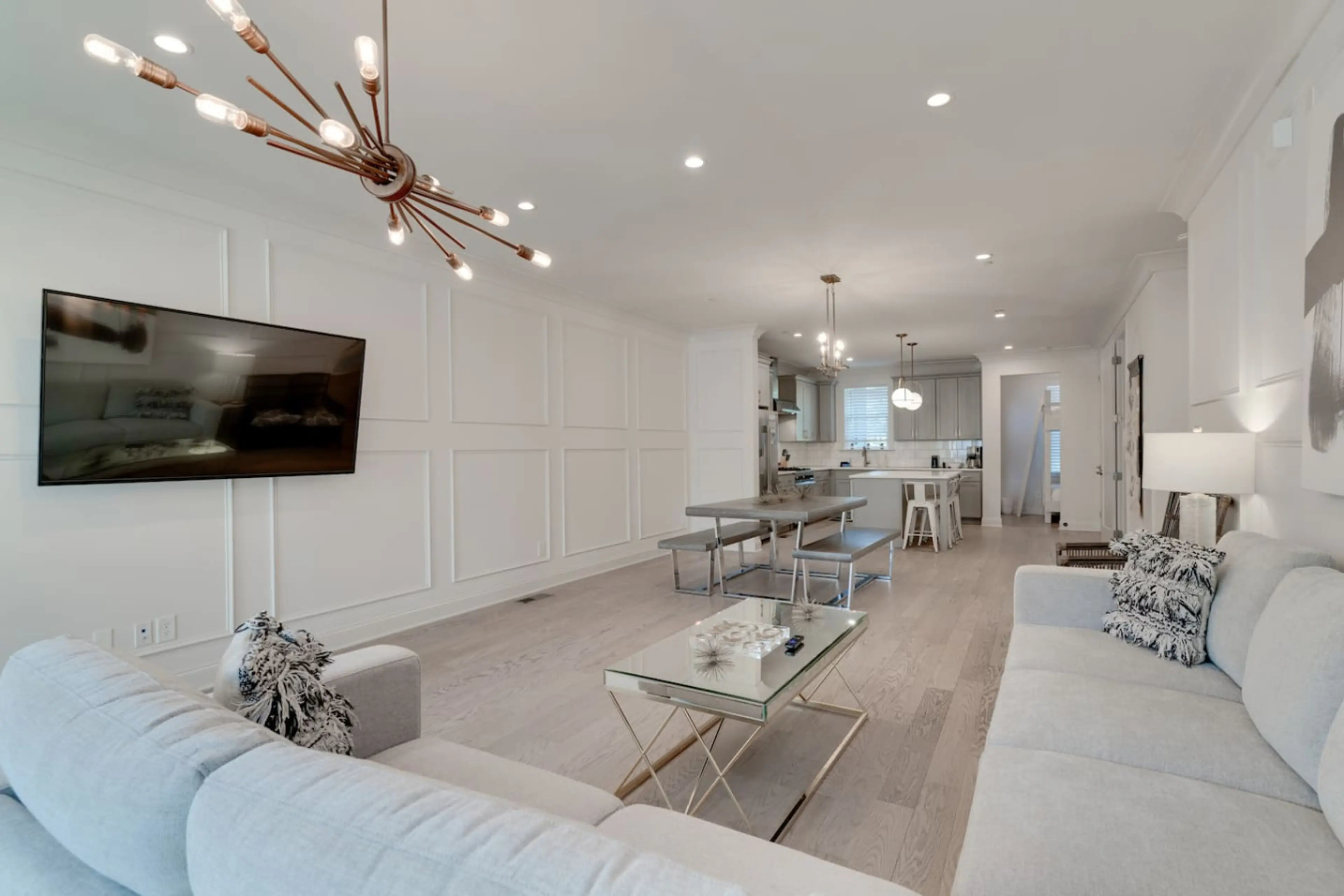 Experience Music City from this designer 4BR townhome! Perfectly nestled between 12 South and The Gulch, it’s the ultimate basecamp for groups of 12. Highlights: Private Rooftop: Skyline views for morning coffee or sunset drinks. Space for Everyone: 4 bedrooms with real beds (no air mattresses!)....